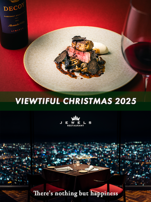 「上記日程は都合が悪くて行けない・・・」というお客様へ朗報です!! 12月1日(月)~22日(月)もクリスマスディナー-Viewtiful Christmas 2025 in the JEWELS-のコース料理をお召し上がりいただけます! ※ 通常のルミエールコース/ 8,800円 の提供を一時中止とさせていただき、クリスマスコース/ 16,500円 を提供致します。 ※ 今期間については生演奏はございません。 ※ 窓側指定席の販売をしております。